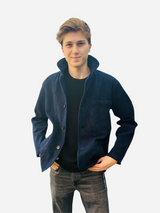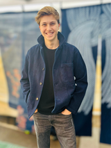Inspired by classic workwear but reimagined in a heavier, more structured form, this indigo sashiko coat bridges the gap between jacket and overcoat. The dense, textured cotton offers warmth and durability, while the soft roll of the lapel adds character and comfort. Slightly oversized through the shoulder for easy layering, it’s a versatile autumn–winter piece — relaxed yet quietly refined.