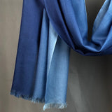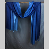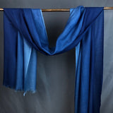 Hand-dyed in natural indigo. Gradient color, from light to dark.
